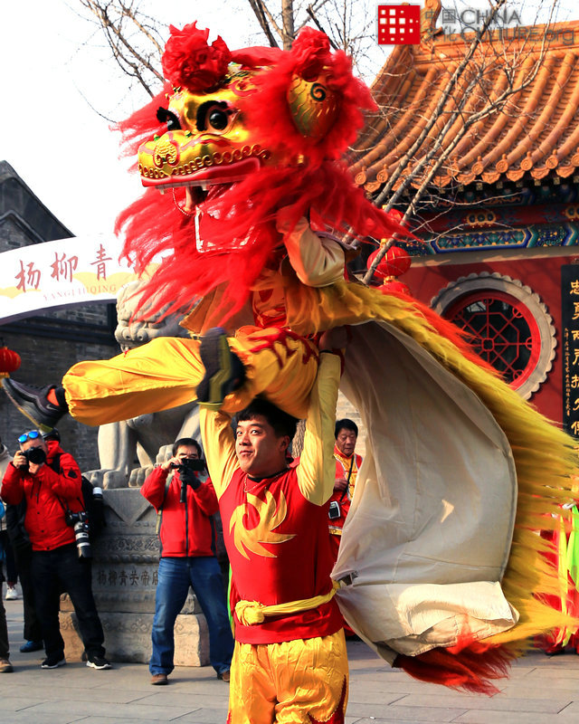 2020年1月17日拍攝于天津市西青區(qū)楊柳青風(fēng)景區(qū)。千年古鎮(zhèn)楊柳青為迎接傳統(tǒng)新春佳節(jié),舉行 ”第十七屆西青區(qū)民俗文化旅游節(jié)”,于2020年1月17日舉行開幕式。在如意大街廣場進(jìn)行精彩的“舞獅”表演,讓游客置身于歡樂、祥和、喜慶的氛圍之中。[攝影:李學(xué)禮]