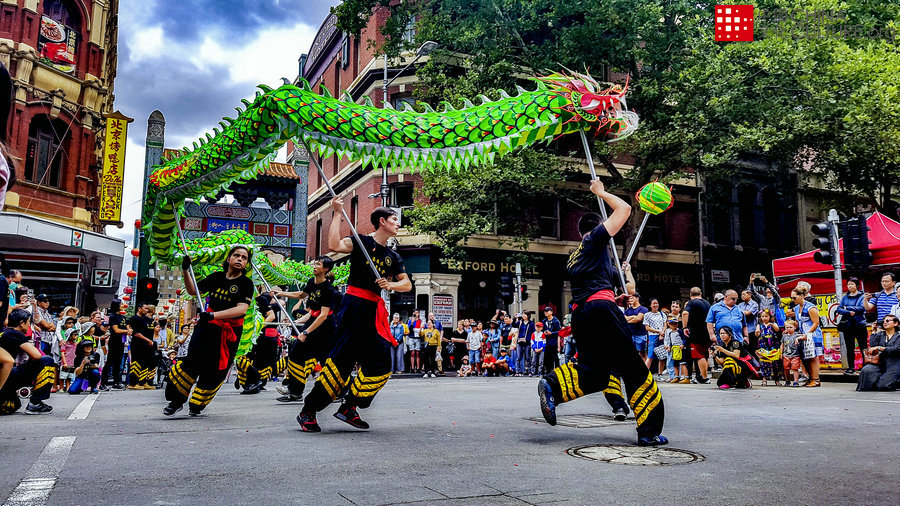 2020年2月2日拍攝于澳大利亞墨爾本唐人街。農(nóng)歷大年初九,澳大利亞墨爾本舉行中國新年慶典,各界藝術(shù)團(tuán)體在市中心和唐人街游龍舞獅、載歌載舞,吸引大批當(dāng)?shù)孛癖姾腿A僑華人到場觀看,共同歡慶農(nóng)歷鼠年的到來。[攝影:王旭東]
