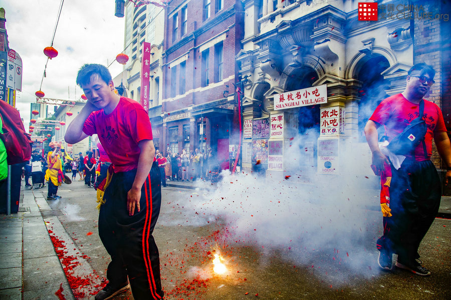 2020年2月2日拍攝于澳大利亞墨爾本唐人街。農(nóng)歷大年初九,澳大利亞墨爾本舉行中國新年慶典,各界藝術(shù)團(tuán)體在市中心和唐人街游龍舞獅、載歌載舞,吸引大批當(dāng)?shù)孛癖姾腿A僑華人到場觀看,共同歡慶農(nóng)歷鼠年的到來。[攝影:王旭東]