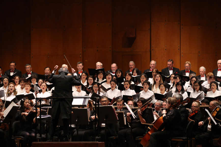 Artists perform "Yellow River Cantata" during the Symphonic Concert of Centennial Classics in Lincoln Center, New York, the United States, on Sept 15, 2019. The concert was staged here on Sunday to mark the 70th anniversary of the founding of the People's Republic of China and the 40th anniversary of the establishment of China-US diplomatic relations.[Photo/Xinhua]