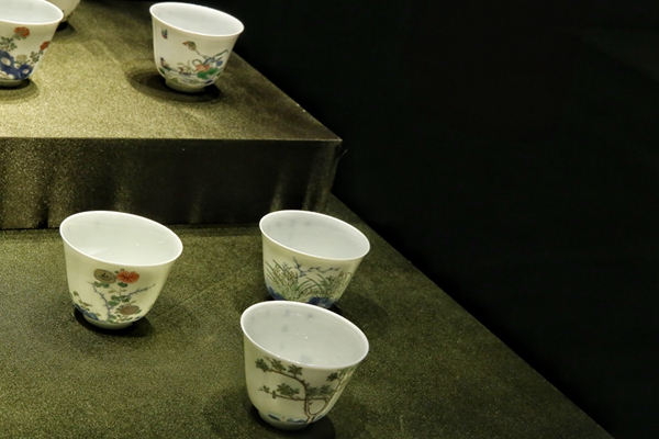 A set of ceramic cups with decorative patterns reflecting 12 varieties of flowers from the reign of Kangxi (1662-1722) in the Qing period.[Photo by Jiang Dong/China Daily]