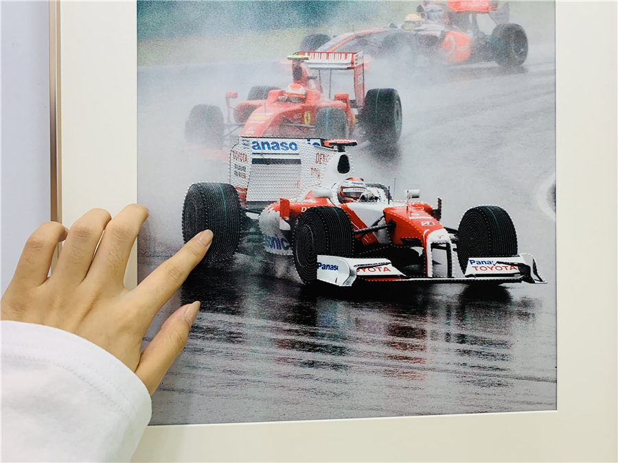 A visitor with visual disability experiences a photo through touch at the 2019 Shanghai Non-visual Photography Exhibition at the lobby of Shanghai United Media Group on Sept 18. [Photo by He Qi/China Daily]