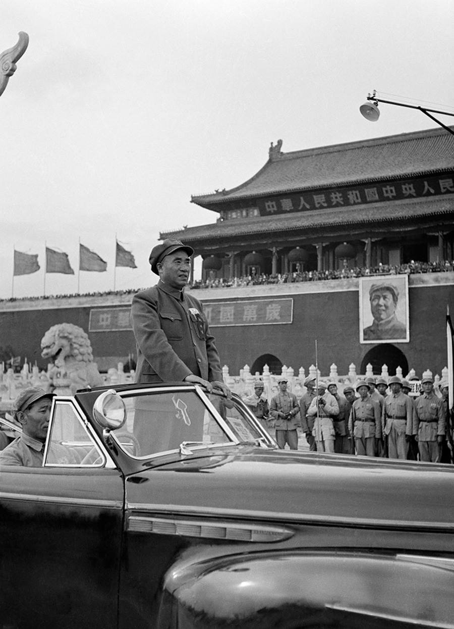 Communist Party military leader Zhu De at the parade during the founding ceremony, taken by Shi Shaohua. [Photo/Courtesy of Shi Zhimin]