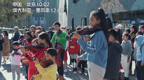Chinese Australians play Me and My Motherlandat a flash mob event in Melbourne.[Photo provided to China Daily] |