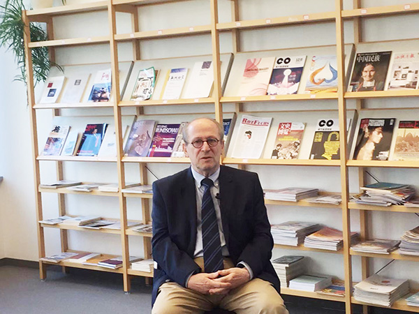 Joachim Broudré-Gr?ger, Germany's former ambassador to China, sits down for an interview with China Daily website at China Cultural Center in Berlin, Germany on Sept 22. [Photo by Feng Minghui/chinadaily.com.cn] |