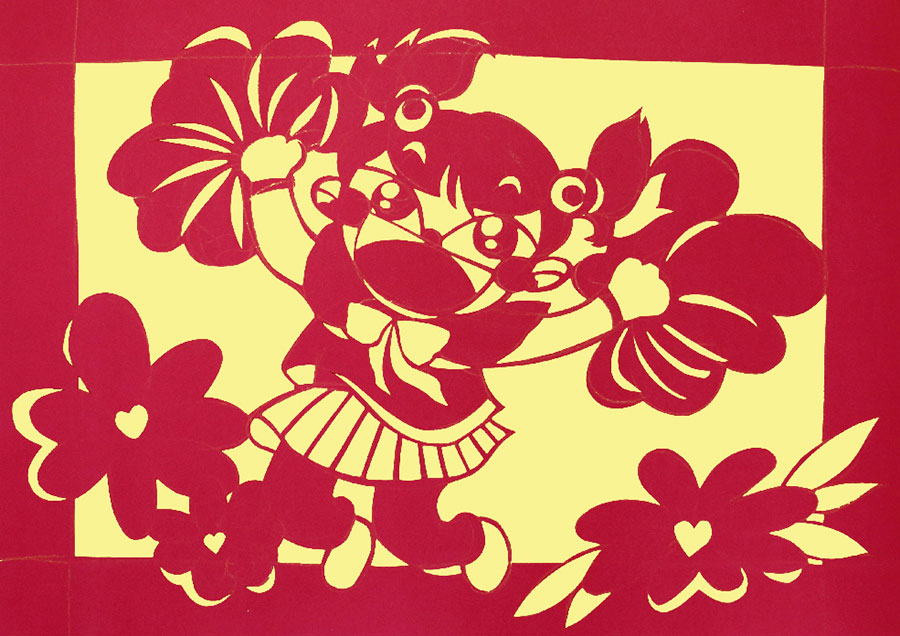 A piece of Chinese paper cut work is on display at an exhibition in Beijing. [Photo/chinadaily.com.cn]