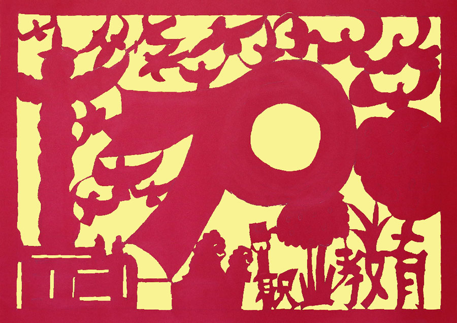 A piece of Chinese paper cut work is on display at an exhibition in Beijing. [Photo/chinadaily.com.cn]