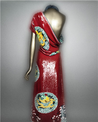 Dresses designed by Roberto Cavalli, Tom Ford for Yves Saint Laurent, and Christian Dior for House of Dior highlight elements of Chinese culture. [Photo provided to China Daily]