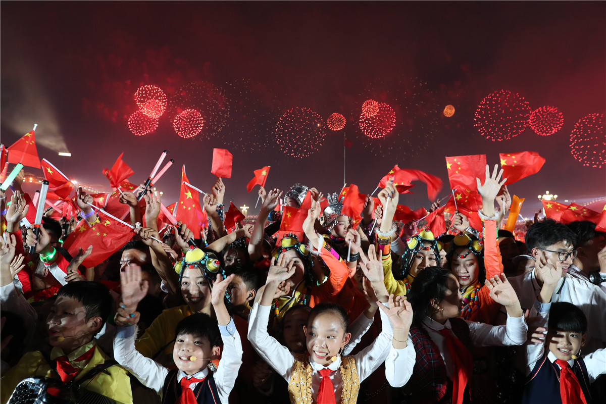 People participate in a grand evening gala marking the 70th founding anniversary of the People's Republic of China in Beijing, capital of China, Oct 1, 2019. [Photo/Xinhua]