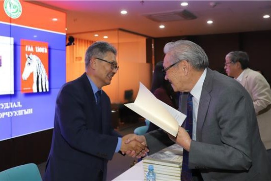 A handover ceremony to donate Chinese literary works to Mongolian educational institutions and readers was held at the Chinese Cultural Center here on Thursday to celebrate the 70th anniversary of China-Mongolia ties.