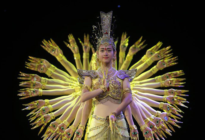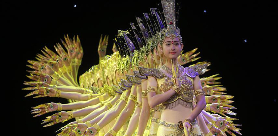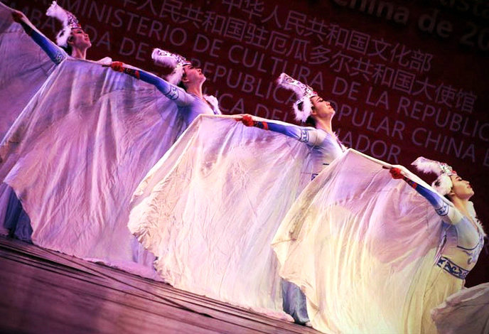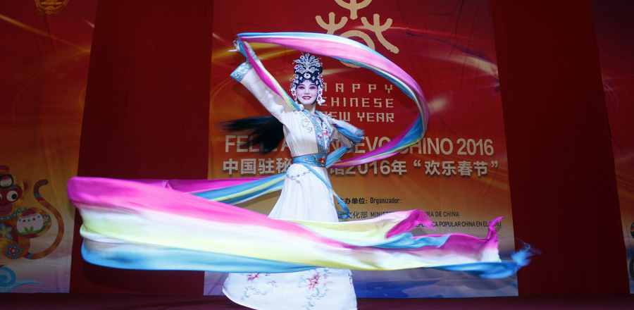 Members of the artistic group of Henan perform during a presentation as part of celebrations for the upcoming Spring Festival at the Theater of the House of Culture in Quito, capital of Ecuador, on Feb 2, 2016.
