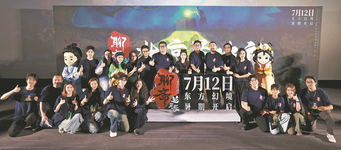Curious Tales of a Temple, a popular animated film adapted from novelist Pu Songling's masterpiece, features five standalone stories: Painted Skin, Miss Lu, Princess Lotus, Nie Xiaoqian, and The Master of Laoshan; the creative team behind Curious Tales of a Temple promotes the film during its premiere in Beijing earlier this month.[Photo provided to China Daily]