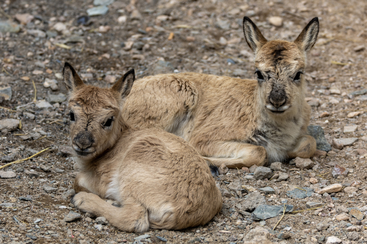 Two rescued Tibetan antelope calves rest at a management station in Changtang National Nature Reserve in Southwest China's Xizang autonomous region, July 14, 2025. [Photo/Xinhua]
