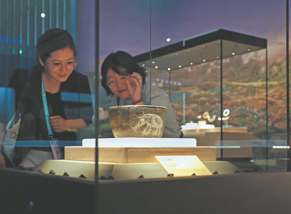This part explores early human activities and the shared genetic roots of Chinese civilization, with highlights such as jade artifacts from the Neolithic archaeological site of Liangzhu in Zhejiang province, painted pottery and jade ware from Shijiahe site dating back about 5,900 years in Hubei province.