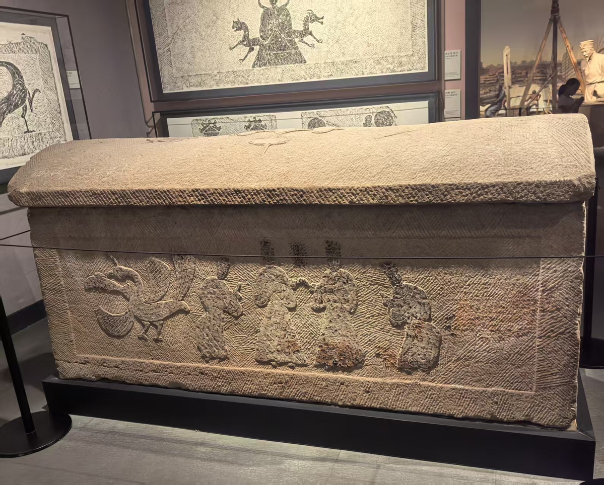 A sarcophagus dating back to the Han Dynasty (206 BC-AD 220) in the Luzhou Museum.[Photo provided to chinadaily.com.cn]