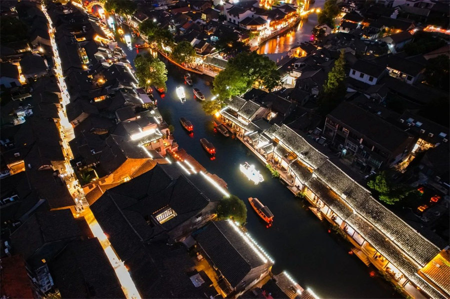 The second season of the Dream of Xitang: Boat Stories parade is staged in Xitang ancient town, Jiaxing city, Zhejiang province, on Friday. [Photo provided to chinadaily.com.cn]