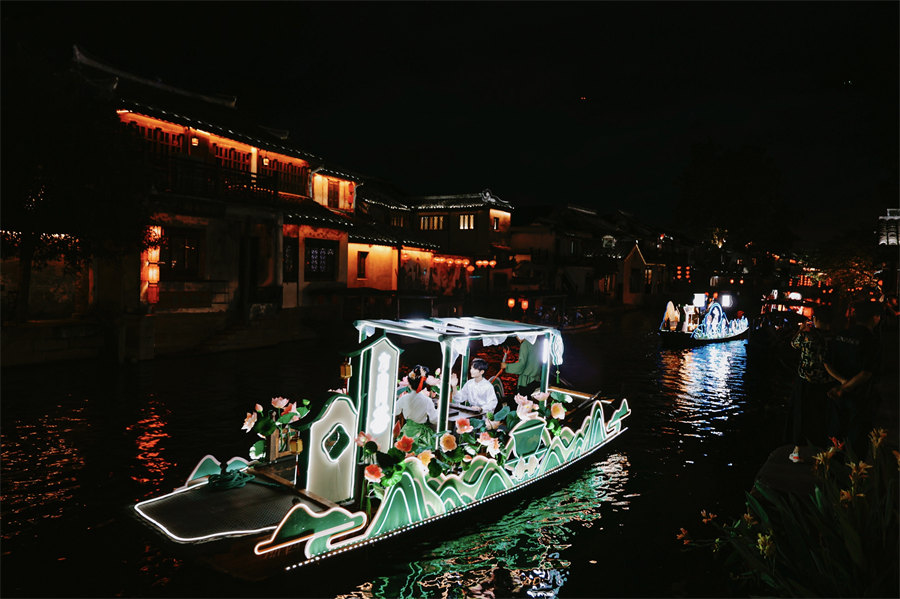 The second season of the Dream of Xitang: Boat Stories parade is staged in Xitang ancient town, Jiaxing city, Zhejiang province, on Friday. [Photo provided to chinadaily.com.cn]
