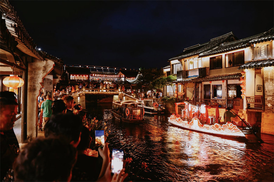 The second season of the Dream of Xitang: Boat Stories parade is staged in Xitang ancient town, Jiaxing city, Zhejiang province, on Friday. [Photo provided to chinadaily.com.cn]