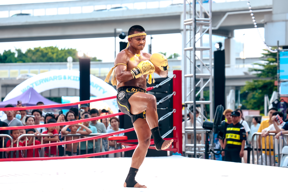 Buakaw Banchamek, a world-renowned Muay Thai champion, performs at the roadshow.[Photo provided to chinadaily.com.cn]