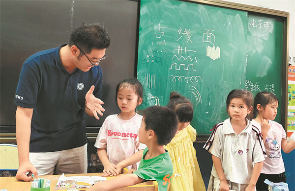 Zhou Shiqi, 23, a soon-to-be graduate student majoring in special education at ECNU, was one of the volunteer teachers this summer. She said she was glad to see the students' curiosity and excitement about the new AI course, as well as their growing self-awareness and emotional resilience.