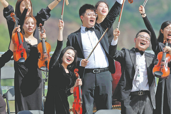 Performers celebrate the concert's success. [Photo provided to China Daily]