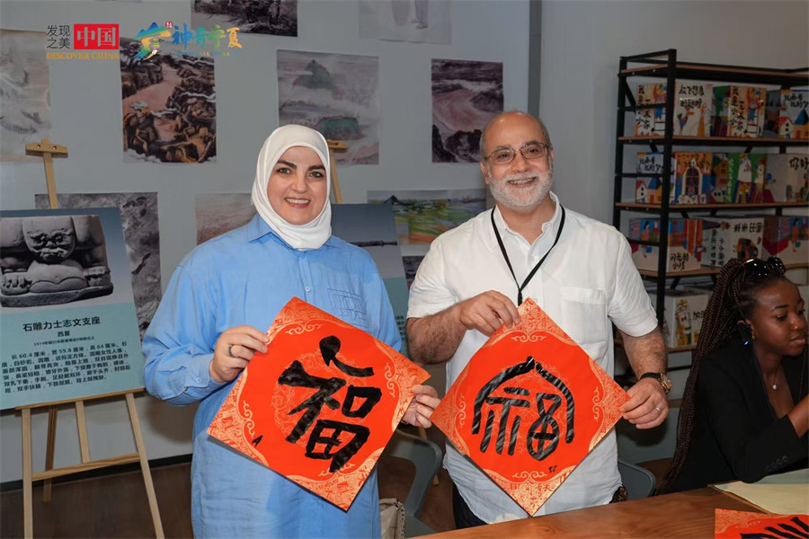 Diplomats from 14 countries, including Dominica, Jordan and the Bahamas visited the Ningxia Art Museum in Yinchuan city, Ningxia Hui autonomous region. [Photo provided to chinadaily.com.cn]