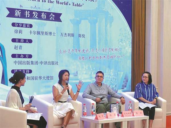 Drawing on her own research into Mediterranean culinary culture and pointing to the eighth chapter of the book, Greek Festivals and Cuisine, Chen shared with the audience and food enthusiasts the historical origins of some Greek dishes.