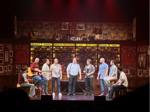 Set in a traditional British or Irish pub, this Oliver Award-nominated show features nine male multi-instrumentalist performers who tap dance, sing acapella, and play live instruments like piano, guitar and ukulele, while engaging in spoken word monologues.