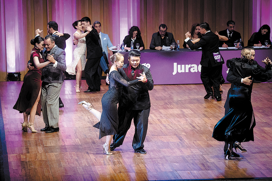 Tango dancers rhythmically move across the floor together during the competition.[Photo/Xinhua]