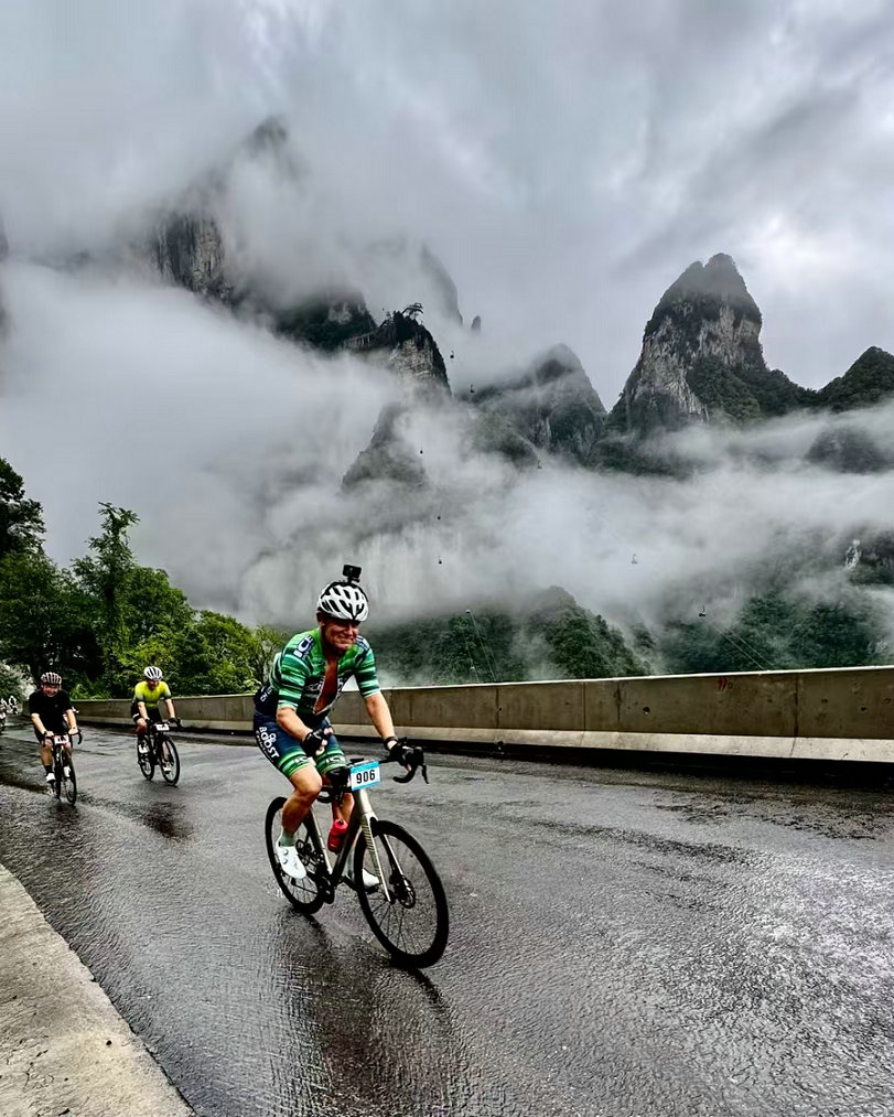 Riders navigated the winding Tianmen Mountain cliffside road, tackling 99 sharp bends and a continuous climb in elevation, demanding advanced cycling techniques and extreme physical endurance.