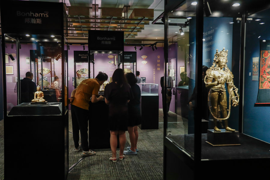 Selected works of art and crafts to be auctioned at Bonhams' upcoming Hong Kong sale shown at a preview in Beijing. [Photo provided to chinadaily.com.cn]