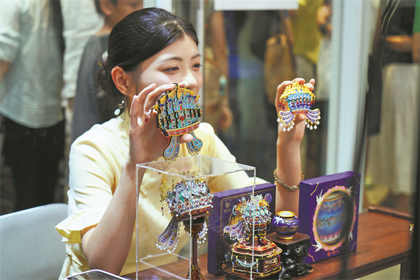 Domestic brands also showcased "China-chic" products. Shenzhen Art Toys Research Co and its partner, Dongguan-based brand Piececool, displayed miniature models of phoenix crowns and bridal sedan chairs.
