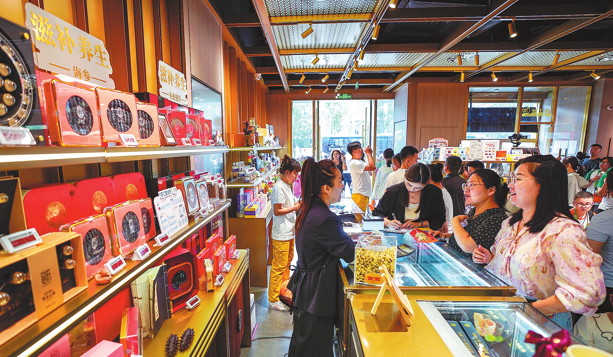Time-honored Beijing brands are joining in with a modern twist. Traditional medicine producer Tongrentang has opened a cafe serving TCM-flavored drinks such as goji berry and dried tangerine peel lattes alongside herbal pancakes, while Daoxiangcun has launched a themed "treasure hunt" store for its dim sums.
