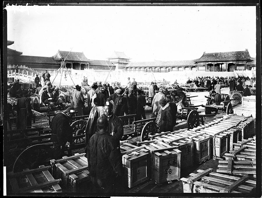 Palace Museum staff pack cultural relics in 1933 to evacuate them southwards and protect them from imminent war. [Photo provided to China Daily]