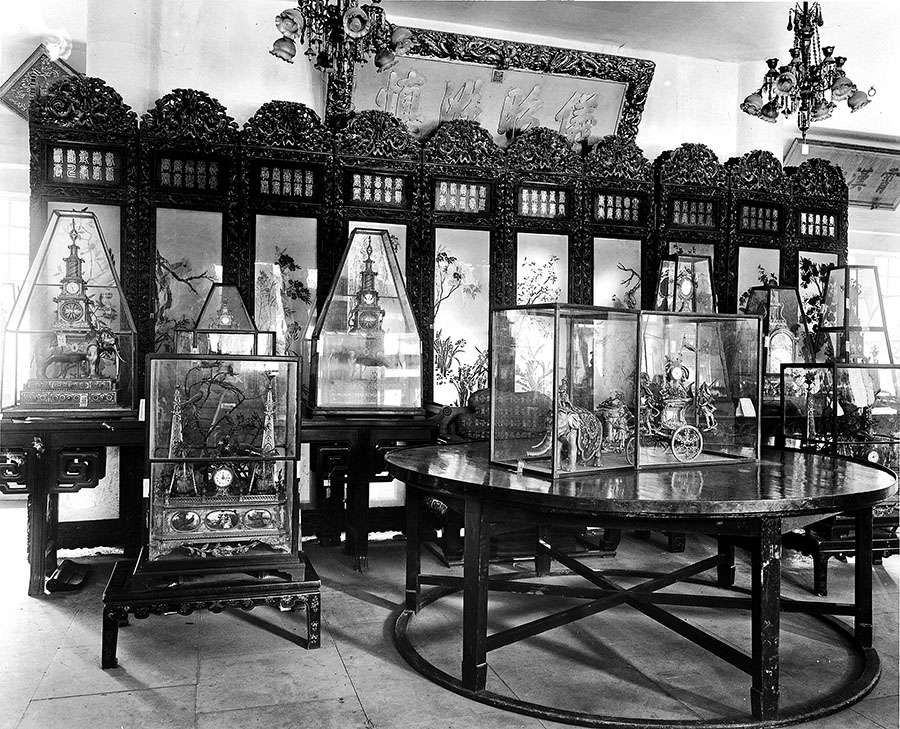 The antique clock gallery of the Palace Museum in the 1930s. The museum houses over 1,500 mechanical clocks. [Photo provided to China Daily]