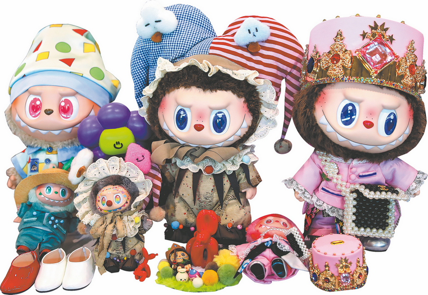Labubu, part of Pop Mart International Group's blind-box celebrity characters, has become a breakout success across China and around the world. Known for their "unboxing surprise "appeal and quirky lore, the characters have spawned a spin-off industry in miniature fashion — knit headbands a few centimetres wide, denim jackets just a handspan long, and even tiny leather backpacks. Fans have curated wardrobes to personalize their figures, often treating them as companions.
