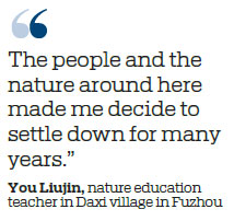 In 2019, You, owner of a crafts shop in Fuzhou, ventured to the tranquil village, a two-hour drive from downtown, nestled in the mountainous region of Yongtai county known as Fuzhou's "backyard garden". During her first visit, You discovered an abundance of natural materials — pine cones, bamboo segments and persimmons — that city children rarely encounter. These materials became the perfect medium for nature education, igniting her vision for an immersive educational space.