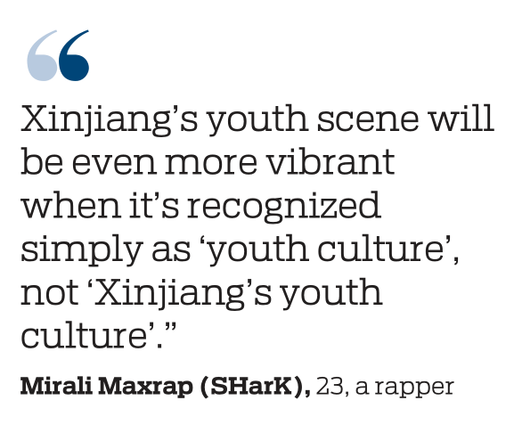 The designs have resonated with a wide audience. Nearly 100 musicians from Xinjiang, including the popular rapper SHarK, have worn their creations.