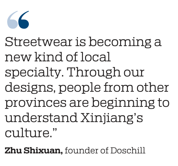 "Streetwear is becoming a new kind of local specialty. Through our designs, people from other provinces are beginning to understand Xinjiang's culture," Zhu added.