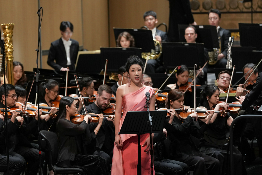 One version was composed by American composer Mason Bates, featuring baritone Liu Tao and soprano Yu Xianyao. The other was a pipa and orchestra piece created by Chinese composers Wu Zuqiang and Liu Dehai. Pipa virtuoso Yang Jing skillfully blended the mesmerizing sounds of the traditional Chinese four-stringed lute with the grandeur of symphonic music, earning thunderous applause.