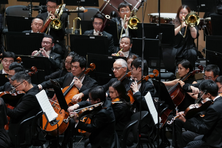 The Philadelphia Orchestra and the Zhejiang Symphony Orchestra co-present the concert at the Hangzhou Grand Canal Theater in Hangzhou, East China’s Zhejiang province, on Oct 18, 2025. [Photo/Xinhua]