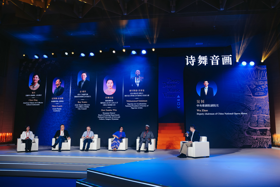 Artistic creatives from various countries engage in one of the three panel discussions at the salon in Liangzhu of Hangzhou, East China’s Zhejiang province, on Oct 18, 2025. [Photo provided to chinadaily.com.cn]
