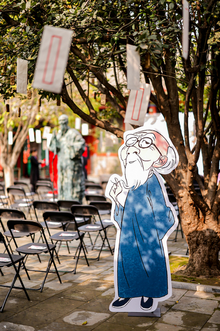 A comic of Qi Baishi in the courtyard of the Memorial Hall of his former residence.[Photo provided to chinadaily.com.cn]