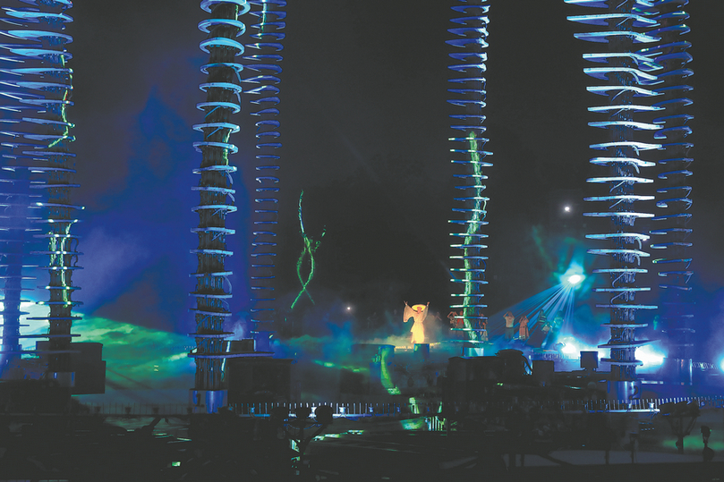 A drone and light show illuminates the night sky in Nianhuawan, a scenic town that integrates Buddhist tea culture with eco-conscious living. LI XINLEI