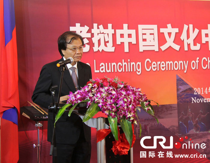 Savankhone Razmountry, deputy minister of the Laos' Information, Culture and Tourism Ministry, delivers a speech at the ceremony.[Photo/cri.cn]