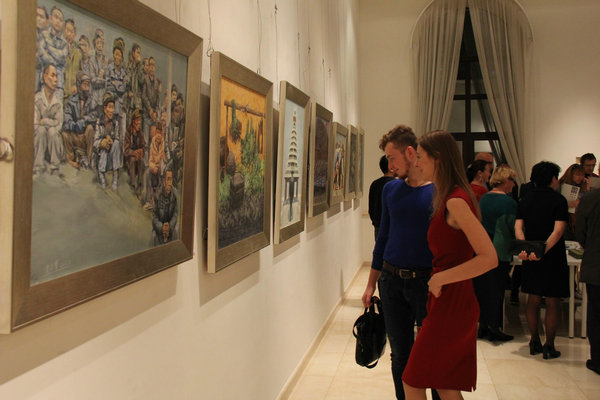 Visitors view paintings that highlight the cultural heritage of traditional Guizhou villages. [Photo provided to chinaculture.org]