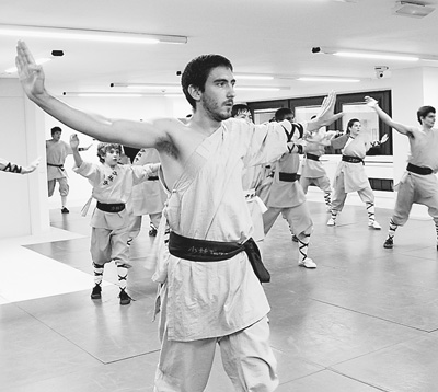 Students learning Chinese martial arts in the China Cultural Center of Rome. [Photo/Xinhua]