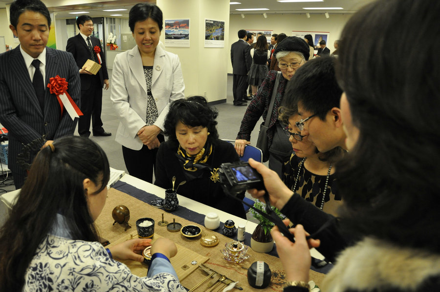 A cultural exchange fair featuring Chinese wood painting and incense ritual art was held at the Tokyo China Cultural Center on December 11.