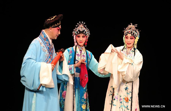 Artists from the Northern Kunqu Opera Theatre of China perform Legend of White Snake during the Helsinki Festival 2015 at the Alexander Theatre. [Photo/Xinhua] |