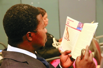 A journalist in Benin reads a Happy Chinese New Year booklet. [Photo/Culturalink.gov.cn] |